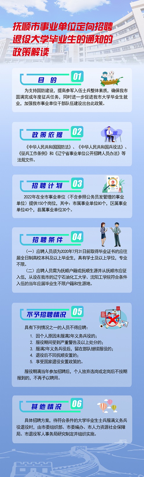 《抚顺市人民政府办公室关于事业单位对从我市入伍大学毕业生退役后进行定向招聘的通知》政策解读