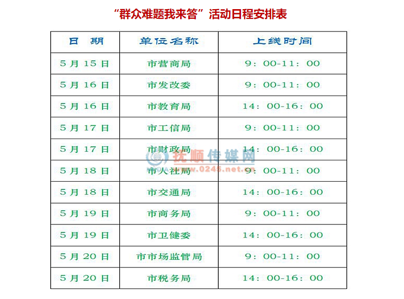 抚顺开展“群众难题我来答”活动 日程安排表请收好