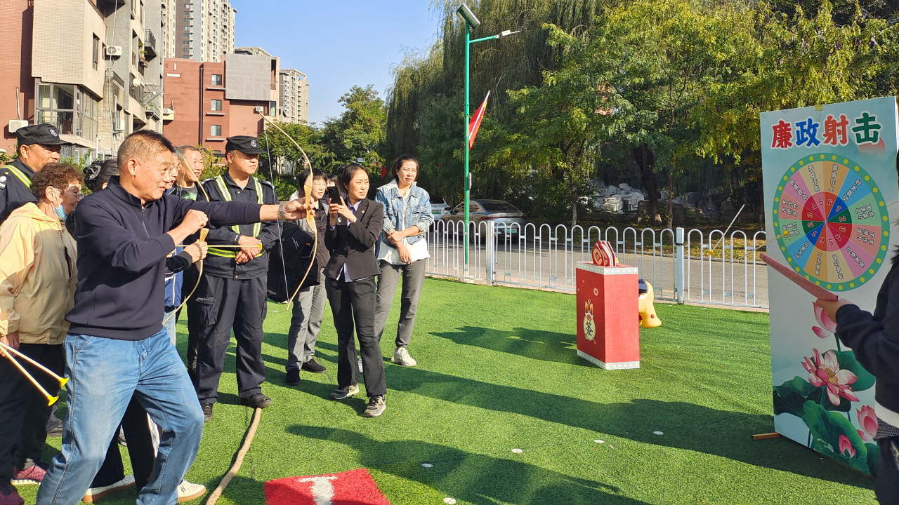 活动中,廉政知识答题环节率先开展。抽签题目涵盖廉政历史、党纪法规及社区廉洁公约等核心内容,在轻松互动中让廉洁理念扎根居民心底。射箭场上,选手瞄准标有 “高高在上”“不担当不作为” 的靶心,以箭矢宣战歪风邪气;投壶区前,老中青居民排成长队,将箭矢投向贴有 “廉洁”“清风” 标签的壶身,用行动践行清廉品格。