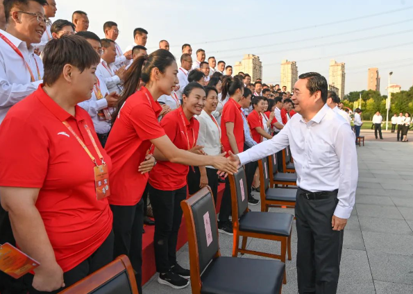 省领导看望慰问全省群众体育先进代表、奥运冠军代表。