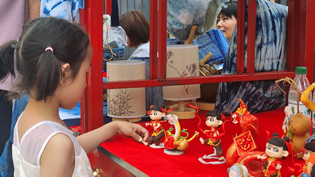 哪吒造型的抚顺面塑俏皮可爱,受到孩子们追捧。参观者吴博说:“把非遗展示搬进博物馆给我们带来了很棒的体验!我和孩子第一次近距离接触体验面塑和草木染,感觉很有意思。”