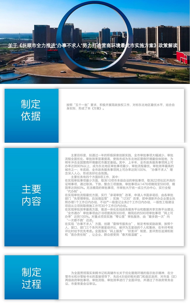《抚顺市人民政府办公室关于印发<抚顺市全力推进“办事不求人”努力打造营商环境最优市实施方案>的通知》政策解读