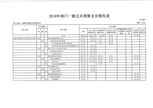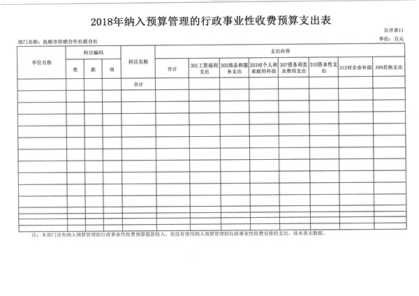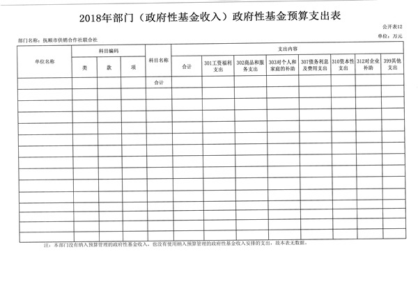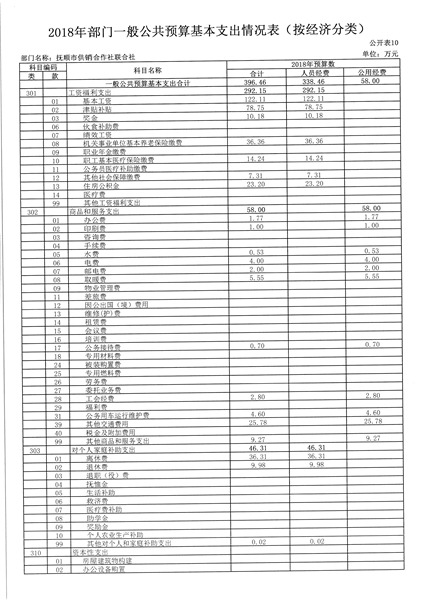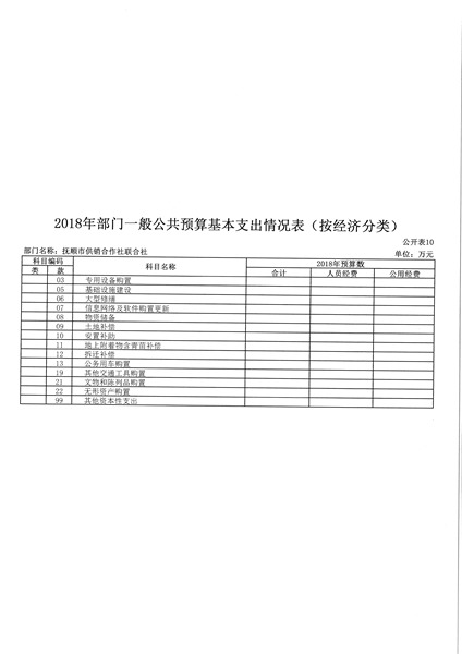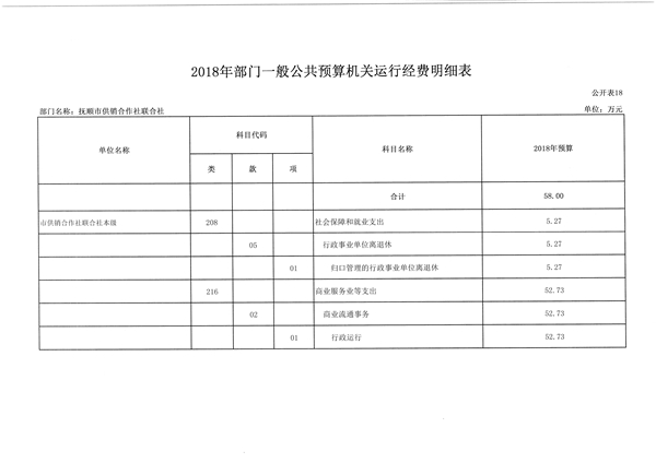 第二部分 抚顺市供销合作社联合社2018年部门预算公开表