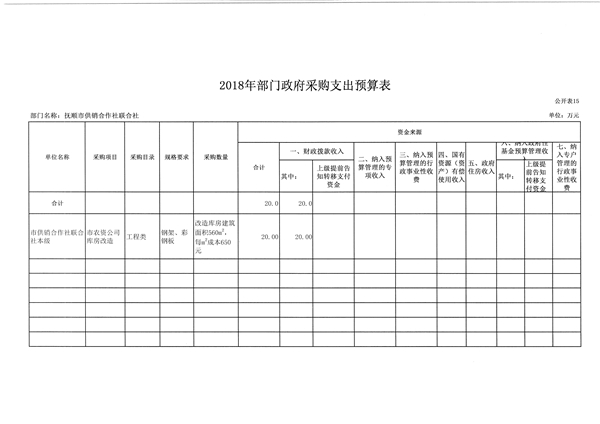 2018年政府采购预算20万元,用于市农资公司永济路仓库维修改造。