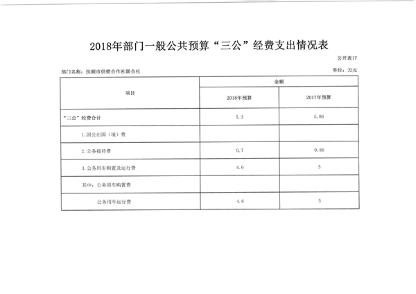 四、关于抚顺市供销合作社联合社2018年“三公”经费预算情况说明