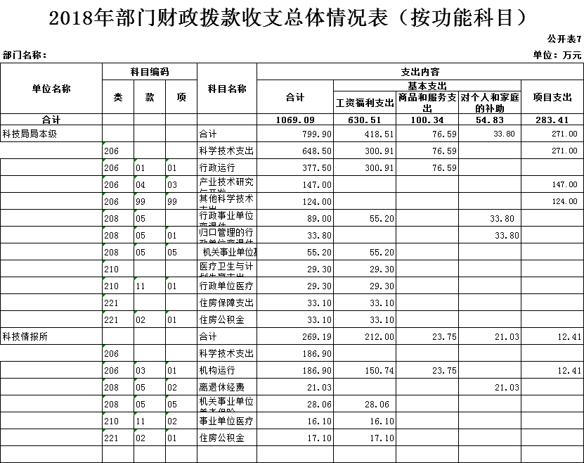 | 七、2018年部门财政拨款支出总体情况表(按功能科目) |