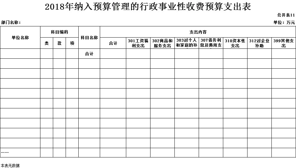 | 十一、2018年纳入预算管理的行政事业性收费预算支出情况表 |