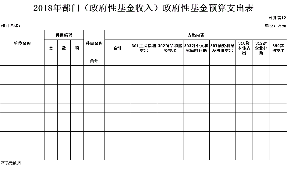 | 十二、2018年部门(政府性基金收入)政府性基金预算支出情况表 |