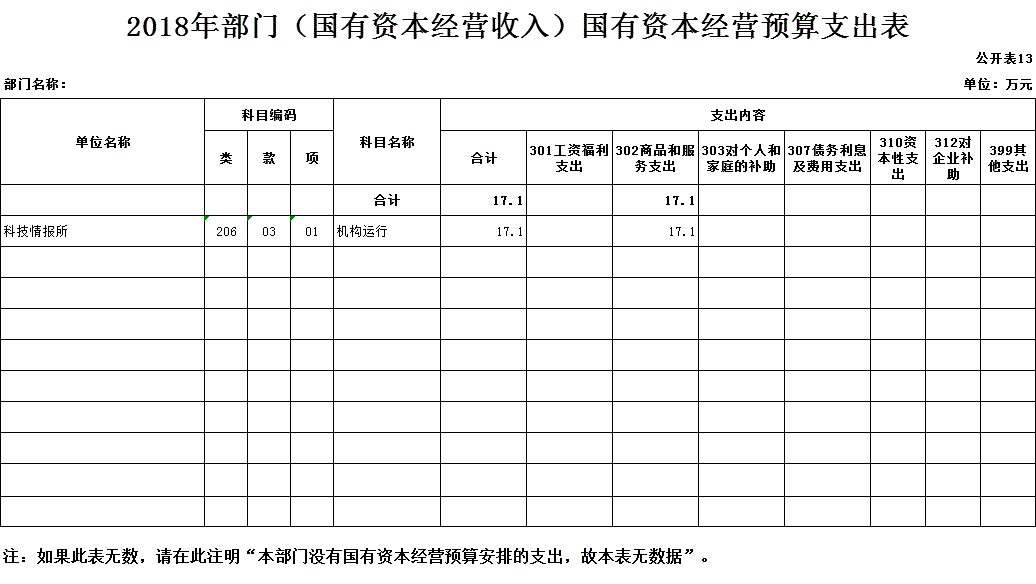 | 十三、2018年部门(国有资本经营收入)国有资本经营预算支出情况表 |