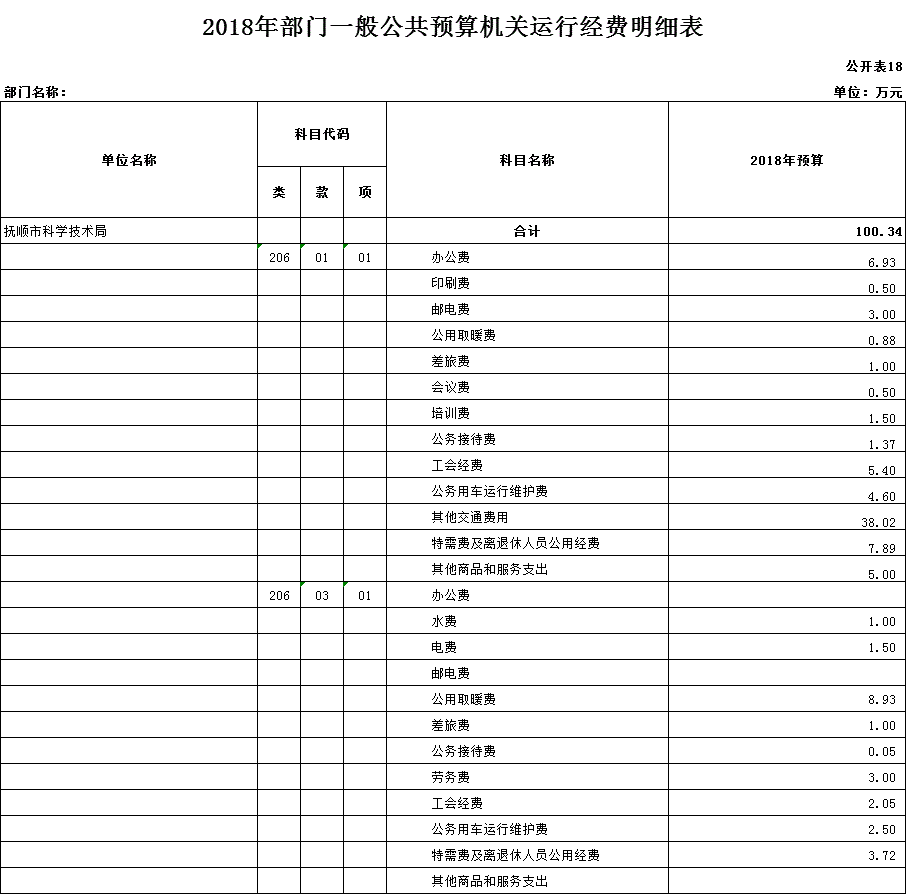 | 十八、2018年部门一般公共预算机关运行经费明细表 |