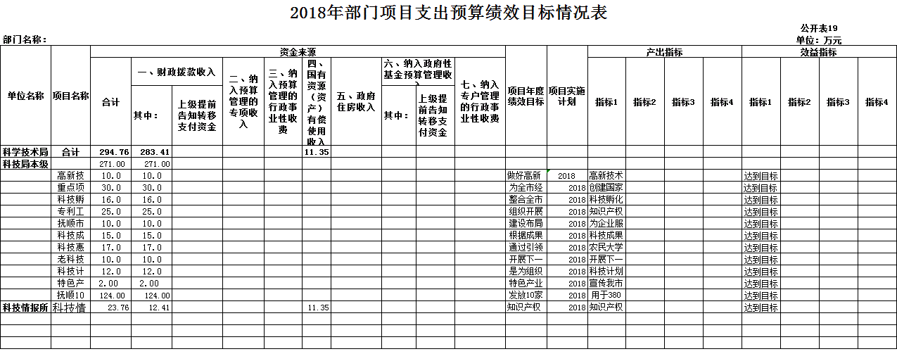 | 十九、2018年部门项目支出预算绩效目标情况表 |