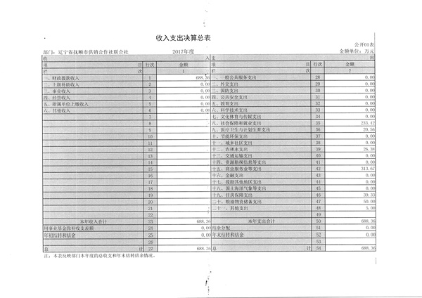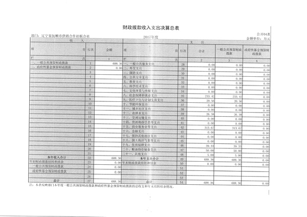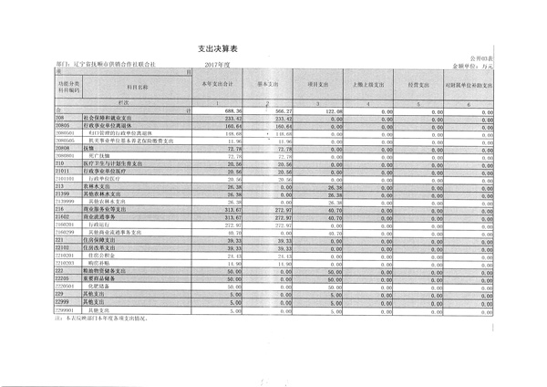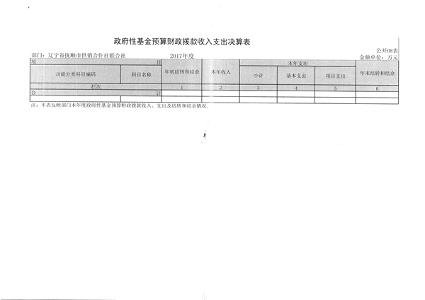 第二部分 抚顺市供销合作社联合社2017年度部门决算公开报表(见附件)