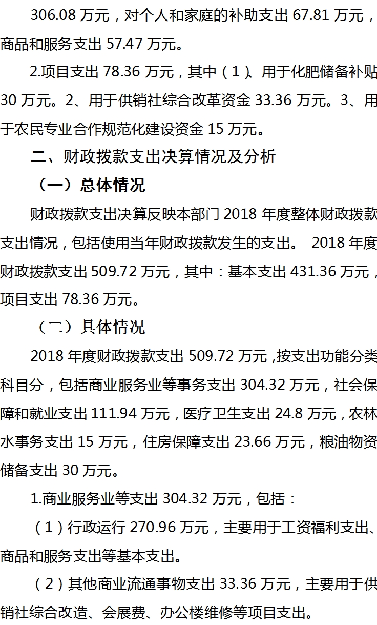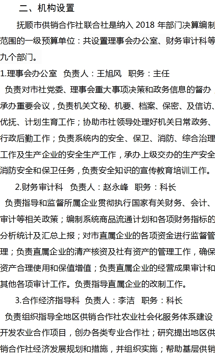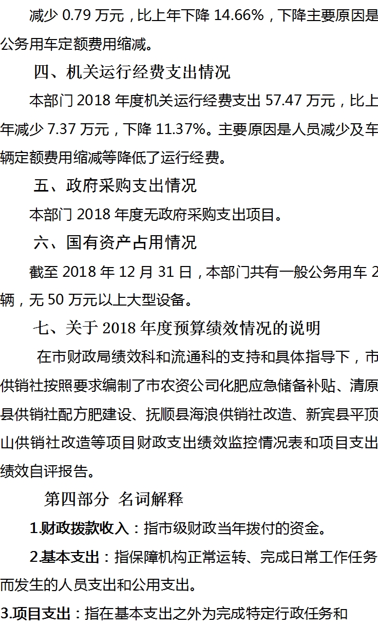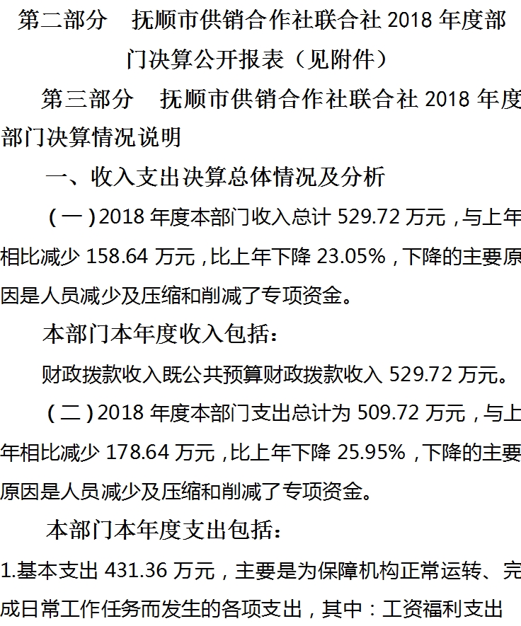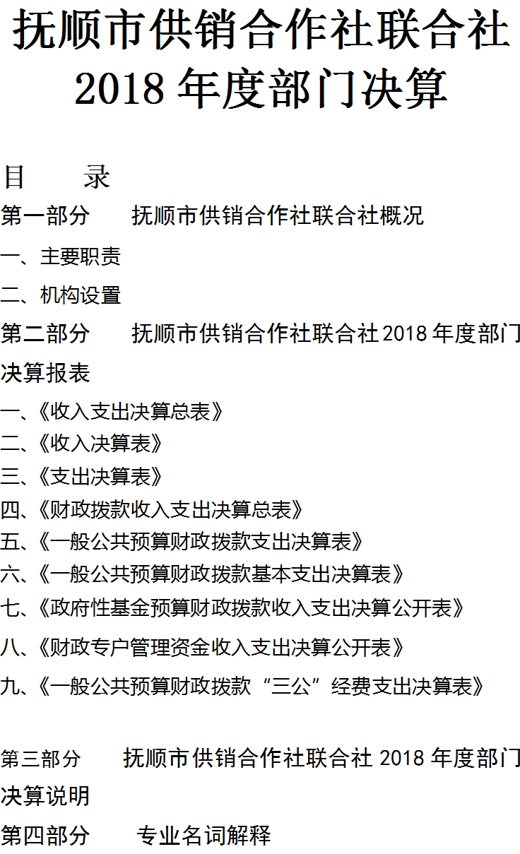 抚顺市供销合作社联合社2018年决算公开