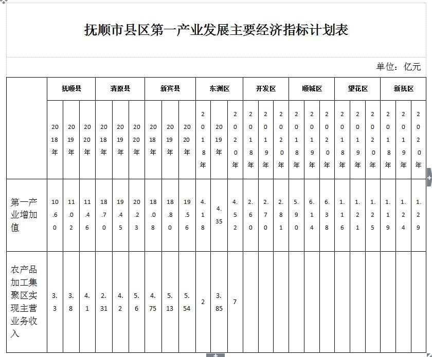 附件:抚顺市县区第一产业发展主要经济指标计划表