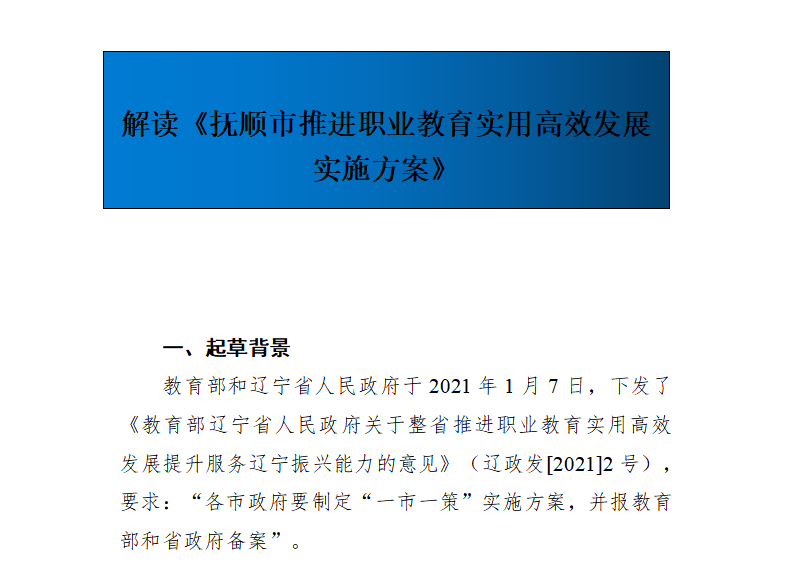 解读《抚顺市推进职业教育实用高效发展实施方案》