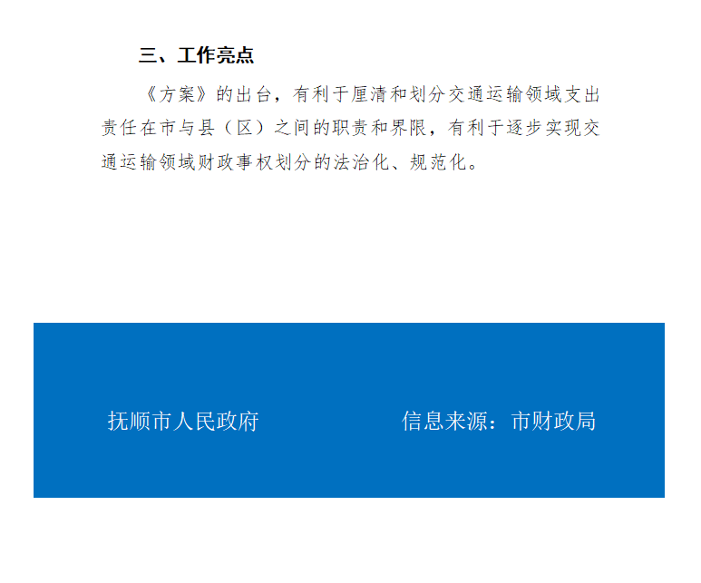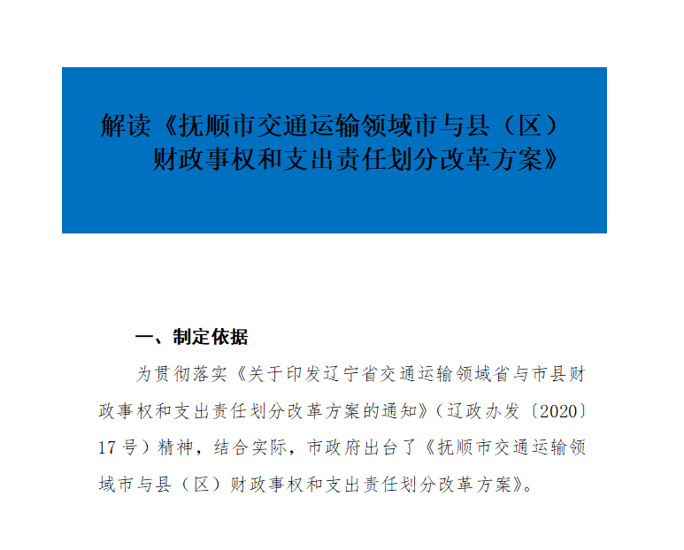 解读《抚顺市交通运输领域市与县(区)财政事权和支出责任划分改革方案》