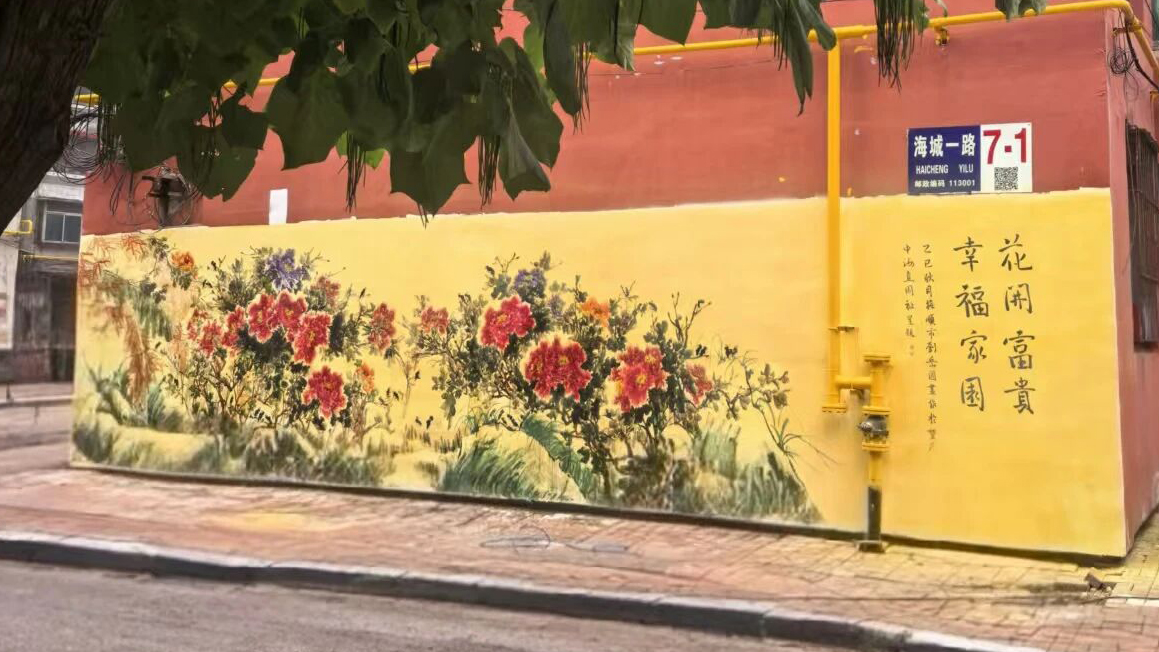 社区入口,新绘水墨墙画成为“门面担当”。牡丹绽放,寓意社区发展的富足繁荣与生活的美好顺遂;枝繁叶茂的芭蕉叶象征社区环境的蓬勃活力与邻里之间的和睦融洽;小鸟穿梭其间,恰如社区居民自在生活的模样,生动诠释了“以人为本”的社区治理理念。墙画不仅勾勒“花开富贵 幸福家园”的美好愿景,更让文化有了“形”,让邻里情有了“桥”,成为社区独有的文化印记。