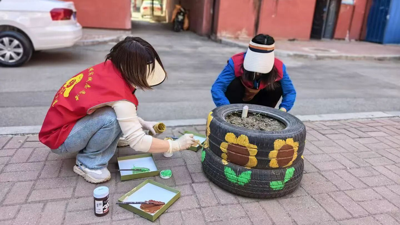 凉亭转角,社区干部联合网格员收集辖区废弃轮胎,打造出5处精致的轮胎花园微景观,成为辖区一张“绿色环保”明信片。居民们积极自主认领轮胎,为其种植花草。过程中,既体验到了种植的乐趣,又为社区增添了一抹绿色生机。从“政府干”到“一起干”,旧物变景的过程,让“社区是我家”从口号变成行动,共治共享的种子在绿意里生根。